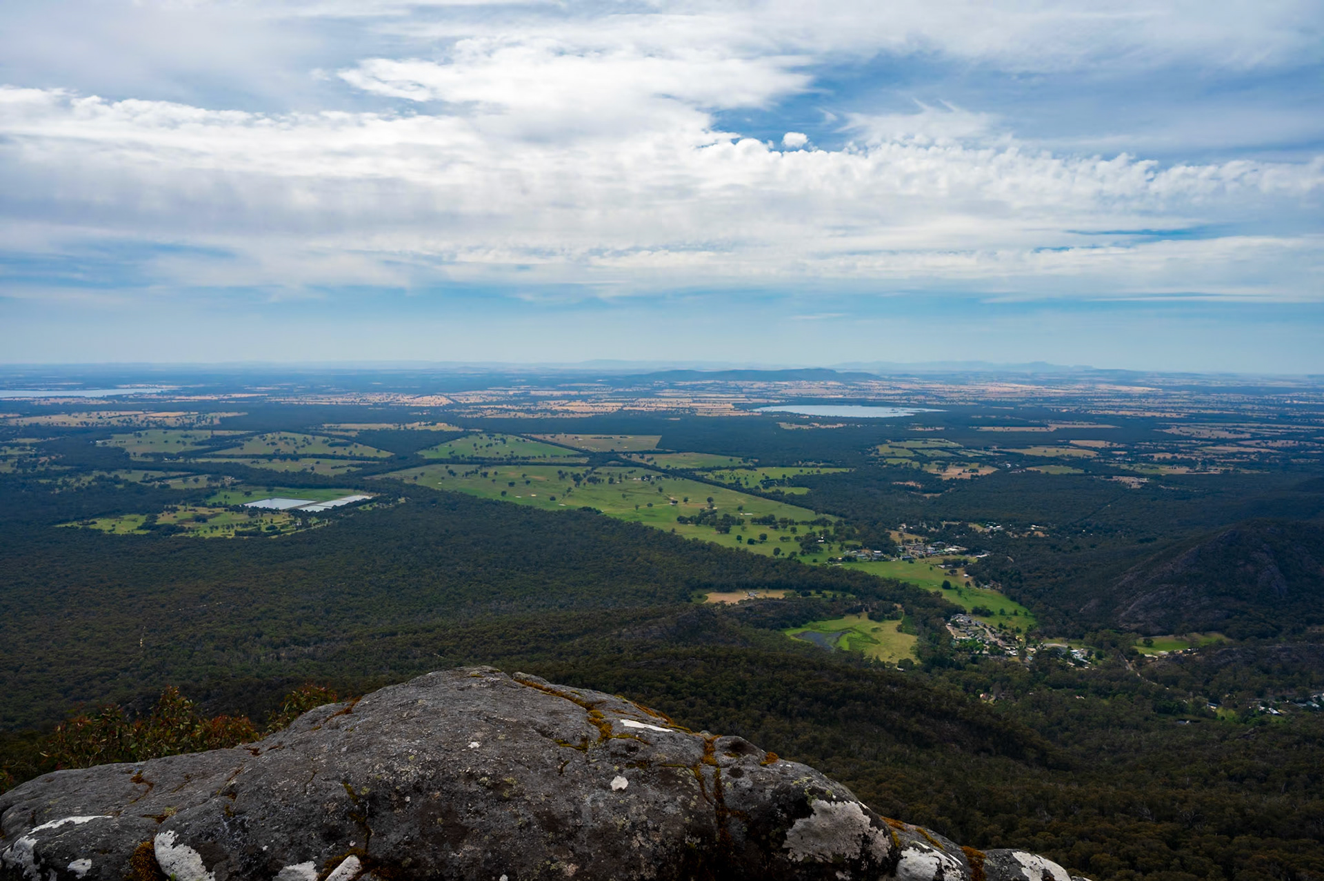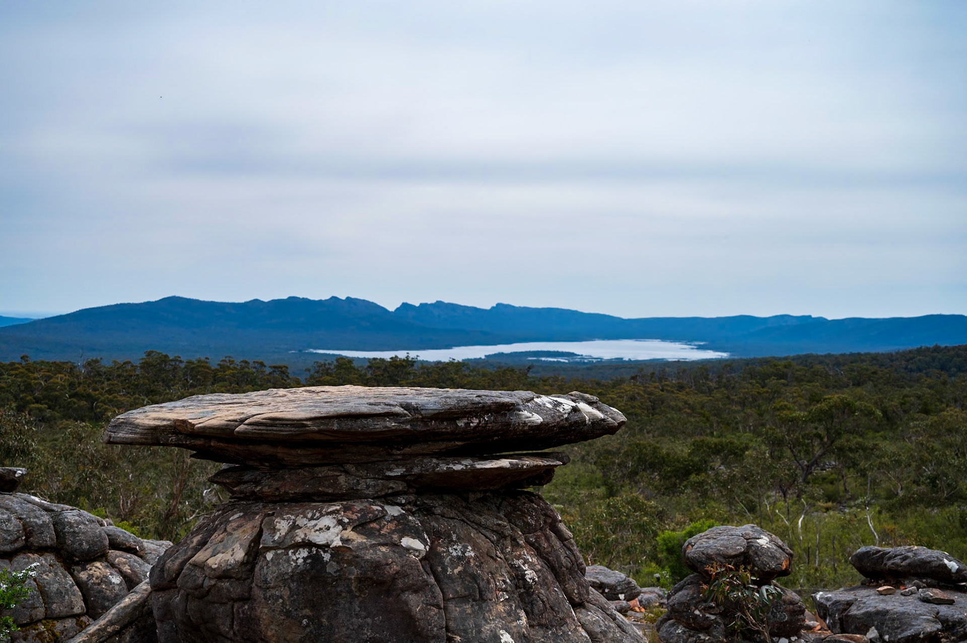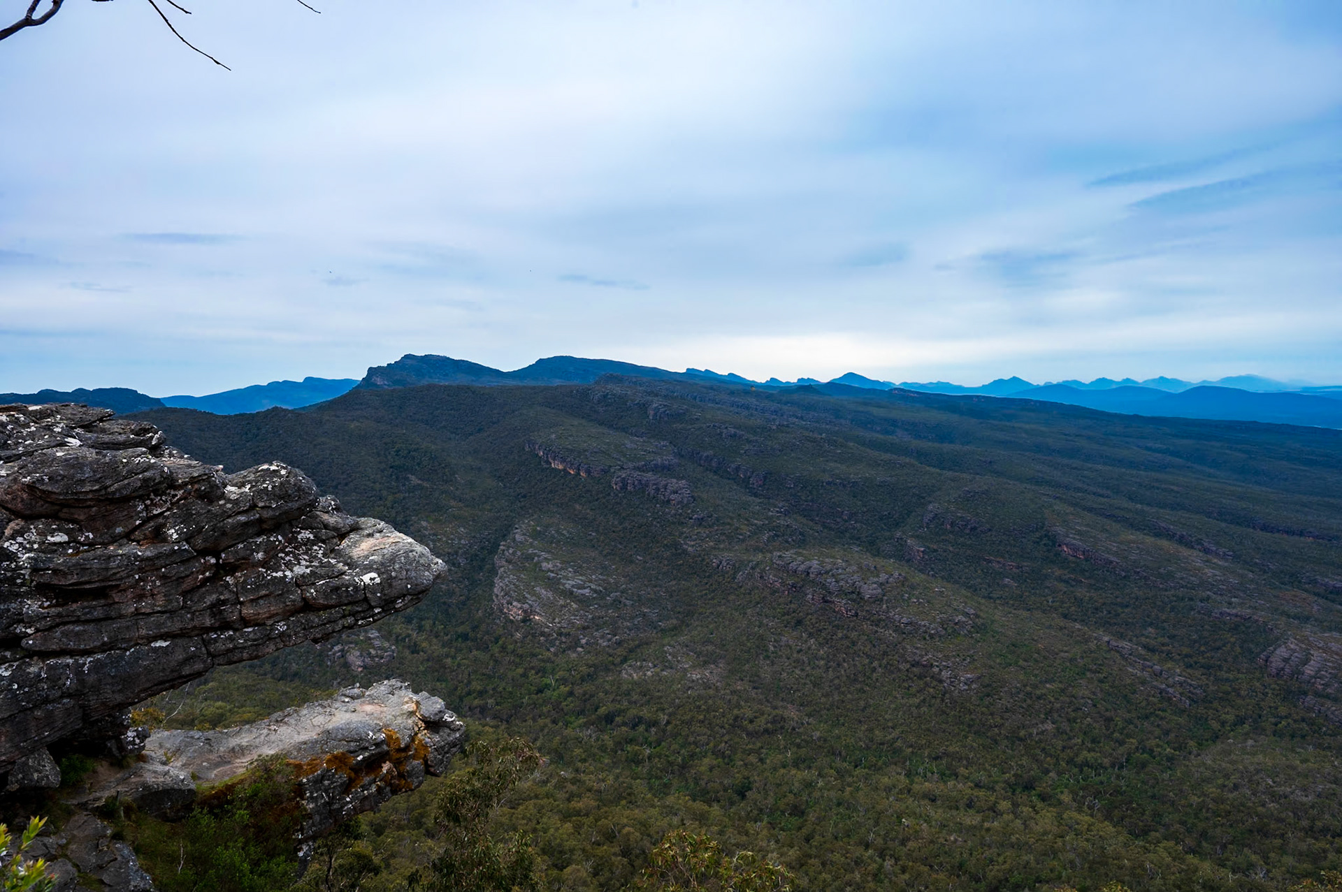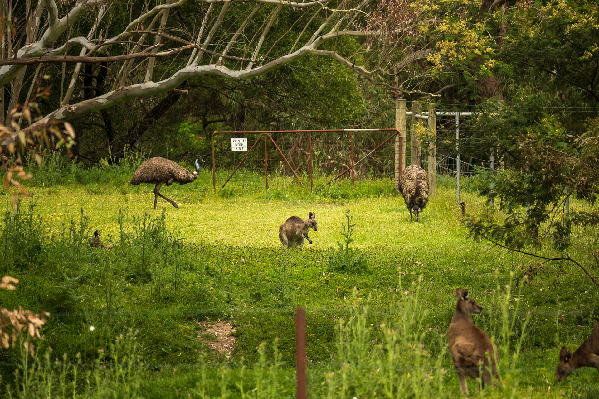 Stop Nummer Zehn, der letzte in der "Natur" - Die Grampians. Noch mehr Tiere - Wallabies, Kakadus, Papageien, Emus) und wieder eine andere Landschaft.